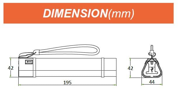 – Størrelse: 195 x 41.2 x 43.5 mm
