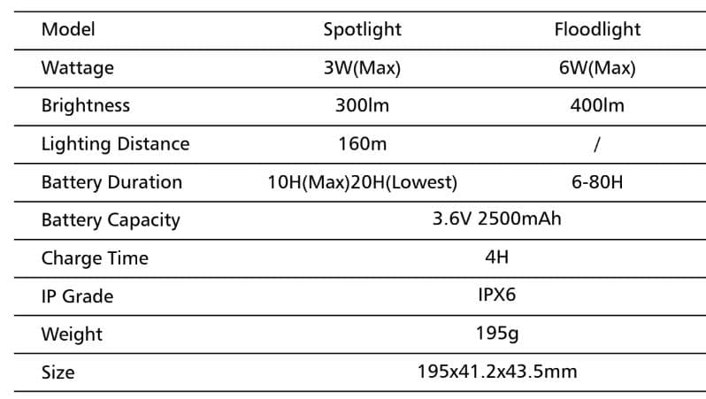 – Lumen: 300lumen spotlight / 400lm floodlight
